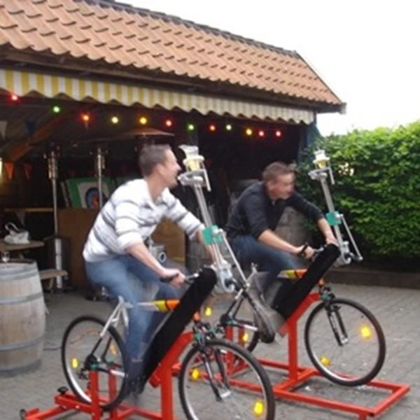 Hoe sneller je fiets, hoe sneller het glas kantelt naar je mond toe. De bierfietsen worden altijd als set, dus per twee verhuurd. Bij ons kun je dit spel zelf ophalen of laten leveren. Selecteer gewoon de optie die jij het fijnst vindt en wij regelen de rest.