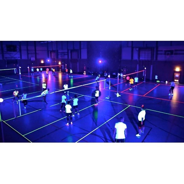 Wil je een sportieve activiteit organiseren waar later nog steeds over gesproken wordt? Dan kun je bij Happy Rent terecht voor de juiste spullen. Je kunt bij ons deze blacklight lampen huren, dit zijn grote sets van 20 lampen voor je glow in the dark sport evenement. Als aanvulling op een sportevenement met LED Black Light bieden wij diverse extra's aan. Om ervoor te zorgen dat de lijnen op een tennisbaan of een sportschoolvloer goed zichtbaar zijn, kun je blacklight tape gebruiken. Deze is verkrijgbaar met verschillende fluorescerende kleuren. Fluorescerende tape laat geen resten achter en is geschikt voor alle soorten ondergronden.