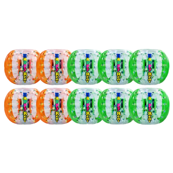 De set bestaat uit 10 bubble balls — genoeg voor twee volledige teams van vijf spelers. Elke bal is gemaakt van stevig transparant TPU en voorzien van schouderbanden en handgrepen van binnen. Spelers zitten half ingesloten in de bal en kunnen elkaar opzij duwen, omgooien en wegschuiven zonder gevaar. Het resultaat: een potje voetbal dat uitloopt op één groot lachfestijn.