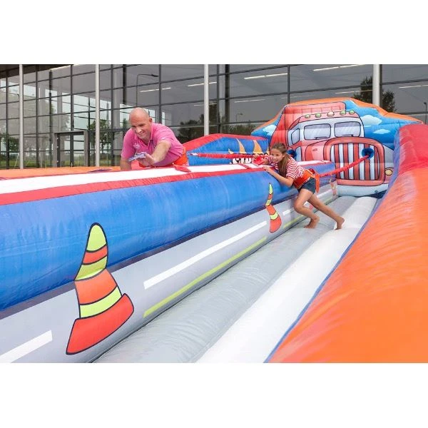 Ben jij de sterkste man of vrouw? Rennen, zo hard als je kan en plak de sticker zo ver mogelijk. De bungee run kan gebruikt worden door kinderen en volwassenen. Met deze attractie tover je gegarandeerd een lach op ieders gezicht. Leuk voor tijdens een zeskamp, buurtfeest of een sportdag.