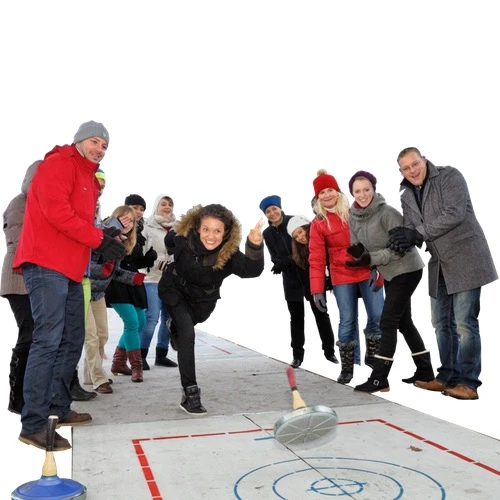 Met onze unieke curlingbaan die bestaat uit kunststof stroken kun je vanaf nu curlen zonder ijs. Je kunt deze curlingbaan direct online kopen bij Happy Rent de levertijd bedraagt gemiddeld maar 1-2 weken. Er is geen dure koelinstallatie nodig, je rolt de stroken eenvoudig uit op een gelijke verharde ondergrond en kunt direct curlen zonder ijs. Deze set bestaat uit een curlingbaan van 12 x 2 Meter en optioeenl Professionele werpstokken voor Volwassenen en doelschijven. Optioneel zijn ook werpstokken voor kinderen verkrijgbaar. Je kunt dit spel zowel indoor als outdoor spelen.