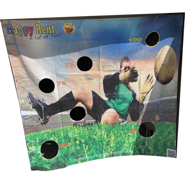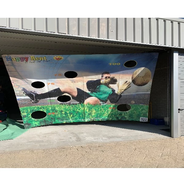 Op zoek naar een unieke toevoeging voor je voetbalevenement of feestje in Heerlen? Ontdek ons veelzijdige doelzeil met een levendige full-color print van een keeper, nu beschikbaar bij Happy Rent! Dit PVC doek, voorzien van handige ophangringen, biedt een spannende uitdaging voor zowel jong als oud. Ideaal voor tuinfeestjes, sportevenementen of teambuildingactiviteiten. Het enige wat je nodig hebt, is een plek om het zeil op te hangen en je bent klaar om de scores te verbeteren! Reserveer gemakkelijk online en haal je doelzeil op bij onze locatie in Heerlen. Ontdek ook onze andere attracties op Happy Rent en maak je evenement onvergetelijk. Let op: directe levering van het doelzeil is niet mogelijk, tenzij gecombineerd met onze grotere attracties