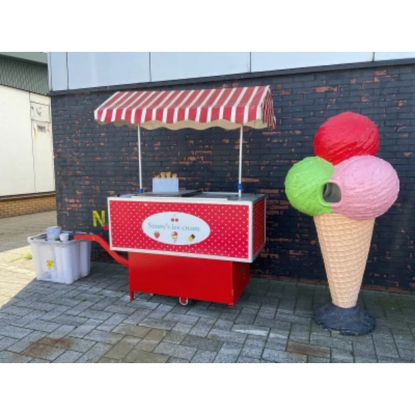De ijskraam is ideaal voor zomerfeesten, buurtbarbecues, open dagen of schoolfeesten. Dankzij het praktische formaat kun je hem eenvoudig verplaatsen en snel klaarzetten. De kraam wordt geleverd met een handig werkblad, afdak en voldoende ruimte om ijs, bekers of hoorntjes neer te zetten.