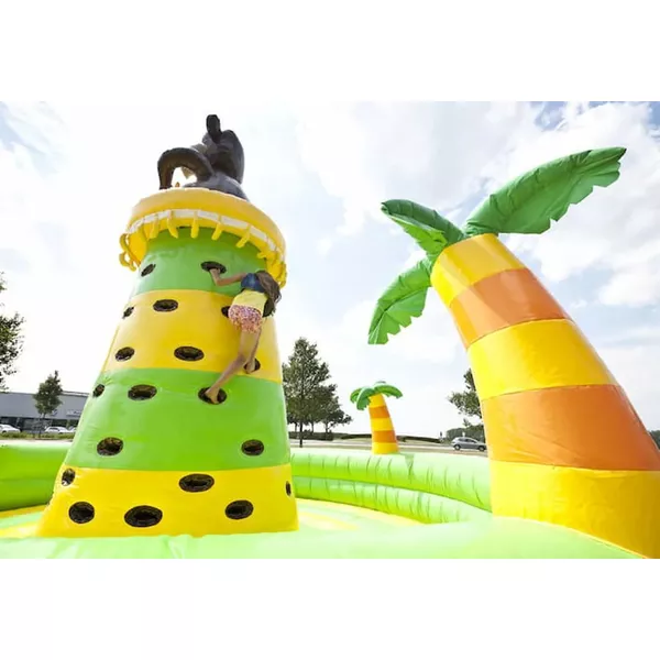 Ben je op zoek naar een unieke en actieve attractie die gegarandeerd voor plezier en uitdaging zorgt? Dan is de Klimtoren Aap 4,6 meter de perfecte keuze! Deze indrukwekkende opblaasbare klimtoren met vrolijk jungle thema is een echte blikvanger op elk evenement. Met zijn grote formaat en speelse uitstraling trekt deze attractie direct de aandacht van kinderen én volwassenen.