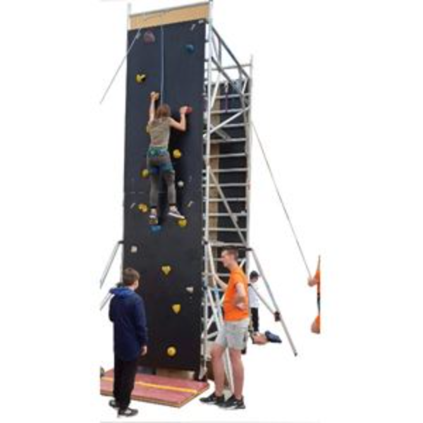 Deze attractie wordt altijd compleet verzorgd door 2 ervaren begeleiders die een klimcursus hebben gevolgd en gediplomeerd zijn. De klimwand kan door twee deelnemers tegelijk gebruikt worden.