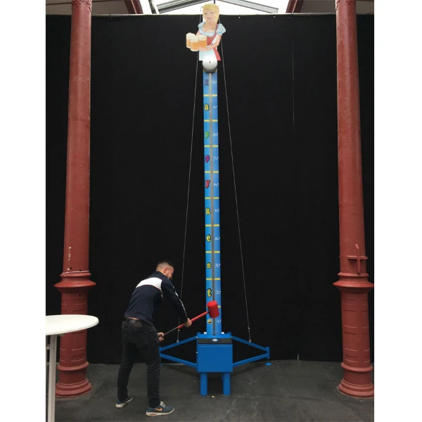 De kop van jut is origineel een kermis attractie voor volwassenen, met zijn hoogte van 5,2 meter is het ook niet eenvoudig om de bel te raken. Tevens kan de moeilijkheidsgraad van onze Kop van Jut ingesteld worden waardoor je zelf kunt bepalen hoe moeilijk of makkelijk het is om tot aan de bel te komen. De attractie wordt standaard inclusief grote hamer geleverd.