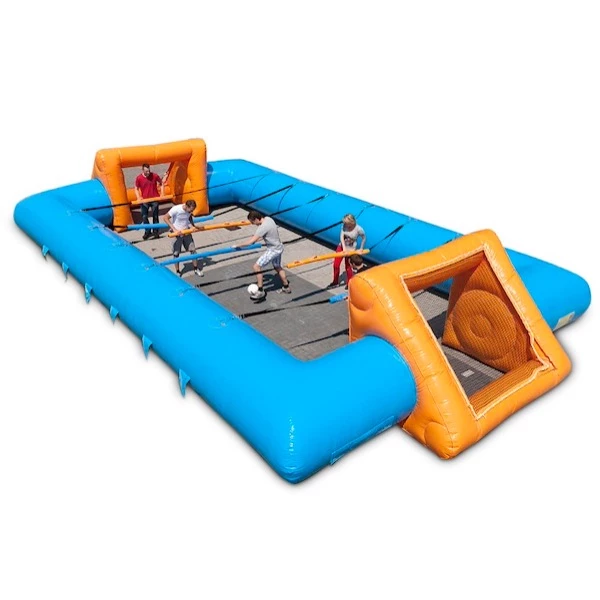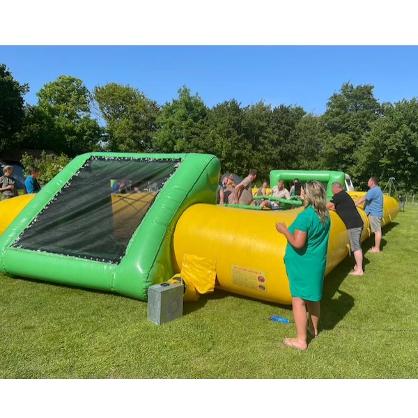 De afmeting van dit levend voetbalspel zonder bodem is 11 x 7 x 2 Meter en wordt geleverd inclusief voetbal, blower en toebehoren. Dit table soccer spel wordt geleverd in de kleur geel/ groen. Een echte aanrader voor iedere (voetbal) vereniging, elk teamuitstapje of zeskamp.