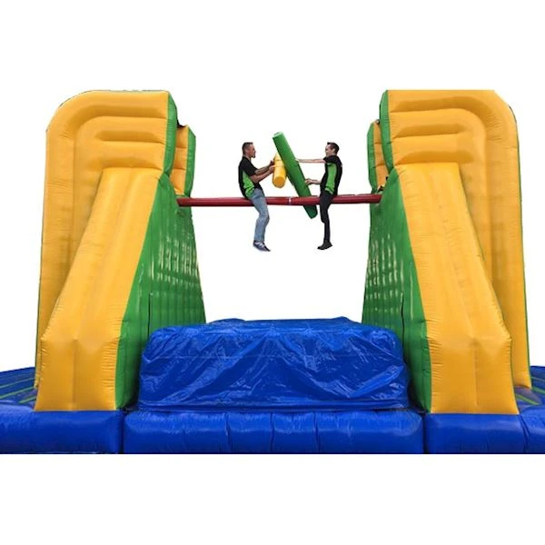 Deze super grote attractie zorgt voor spanning, actie en super veel plezier. Met deze xxl versie van het zakslaan spel strijden 2 personen op grote hoogte tegen elkaar om de winst. De spelregels zijn easy! Degene die als eerste naar beneden is gevallen, heeft verloren. Je valt op een dik kussen, dus pijn doet het niet. Wie gaat er met de winst vandoor? Daag je vrienden, familie en kennissen uit om te strijden op grote hoogte en word de winnaar dan de dag!