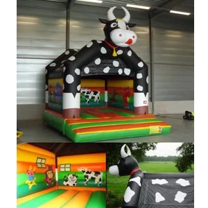 Dit prachtige springkussen koetje is echt super mooi! Het biedt springplezier tot 13 kinderen van 4 - 14 jaar. Als je opzoek bent om een springkussen te huren voor jouw kinderfeest, communie of evenement dan is het springkussen koetje zeker een aanrader. Het springkussen koetje heeft een afmeting van 5.2 x 4 x 4,5 Meter en past daarmee in bijna elke tuin of oprit. Het springkussen koetje behoort tot een van de mooiste springkussens in ons verhuur aanbod en dankzij het dak zijn kinderen ook altijd beschut tegen regen of felle zon. Hiernaast is dit springkussen extra veilig omdat kinderen niet over randen heen kunnen klimmen als het dak gesloten is. Bij lekker weer kan het dak ook open gemaakt worden. Dit springkussen wordt compleet verhuurd met blower, grondzeil en haringen om het springkussen mee te verankeren. Dit springkussen is goedgekeurd aan de hoogste europese veiligheidsnorm door het Liftinstituut. Dit springkussen is dus niet alleen heel leuk maar ook een heel veilig springkussen om te huren.