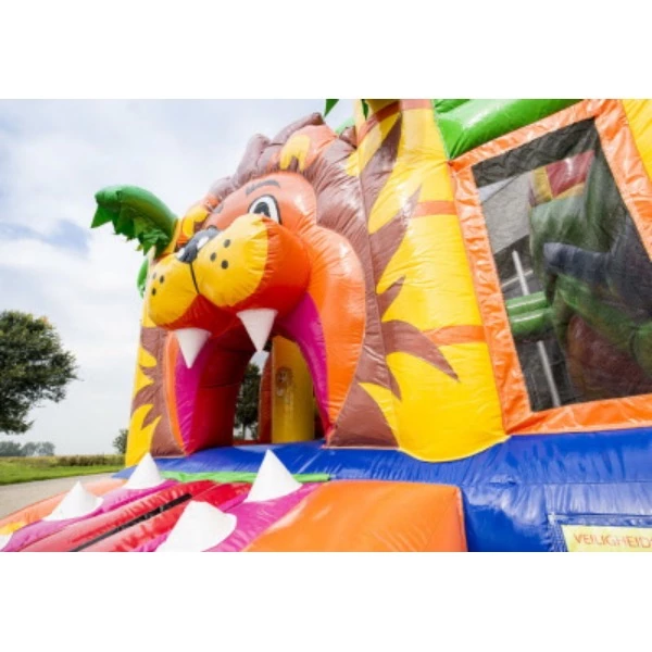 Voor de stoere kinderen in de jungle is dit het perfecte springkussen. Ze kunnen hier klimmen over de klimwand, langs palmbomem rennen en met leuke obstakels spelen. Er hangen boksballen, bokspilaren en nog veel meer leuke attributen. Alle stuiterbollen zijn hier dol op! Je kunt deze multiplay leeuw direct online bij Happy Rent 😃 huren, onze voordelen: