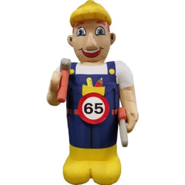 Is de jarige een echte klusser, bouwvakker of doe-het-zelver? Dan is deze opblaasbare Abraham Klusser van 3,5 meter hoog de perfecte manier om hem in het zonnetje te zetten! Met zijn stoere werkoutfit, gereedschap in de hand en gele bouwhelm is deze Abraham een hilarische blikvanger voor in de tuin, op de oprit of bij het werkplaatsfeest. Of het nu gaat om een 40e, 50e of 60e verjaardag, deze vrolijke feestpop zorgt voor een glimlach bij iedereen die voorbijloopt.