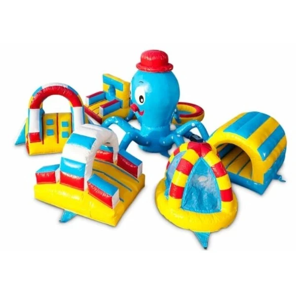 Het Inky-speelkussen is een royaal vormgegeven attractie van 8 bij 8 meter — groot genoeg om een kleine brigade kinderen tegelijk te huisvesten én vol energie te laten rondhossen. Met meerdere speelzones, zachte obstakels, klim- en klauterplekken en voldoende springruimte om die energie echt kwijt te raken, is het een paradijs voor jonge ontdekkingsreizigers. Je zou bijna denken dat Inky een geheime workshop heeft gehad bij NASA voor kinderen!