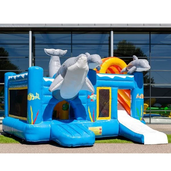 Dit springkasteel dolfijn is zeer eenvoudig en snel op te zetten, al na 15 minuten kunnen de kids als echte dolfijntjes het springkussen induiken!