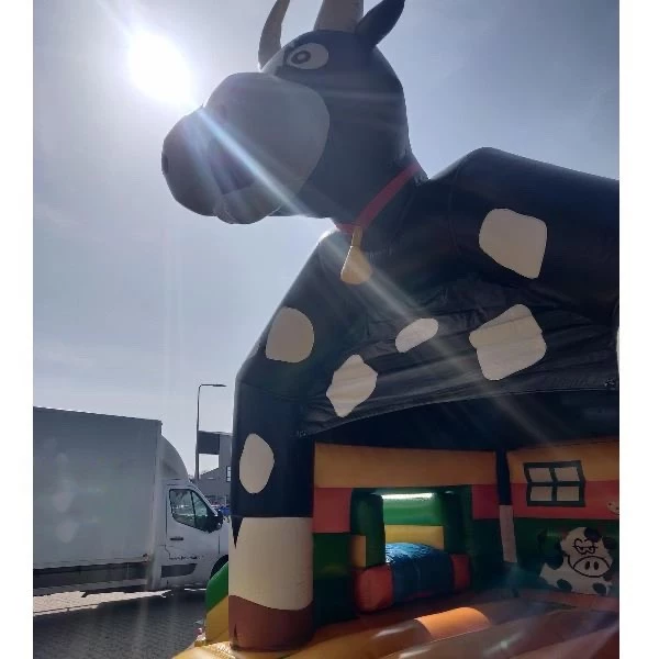 Ben je op zoek naar de perfecte attractie voor een kinderfeest of evenement in Raalte? Kies dan voor ons unieke Springkussen Koe met Glijbaan! Dit kleurrijke springkussen, met een opvallende grote koeienkop en een geïntegreerde glijbaan, belooft urenlang speelplezier voor de kinderen. Het springkussen is ideaal voor feestjes met een boerderij- of dierenthema en vormt gegarandeerd de blikvanger van jouw evenement.