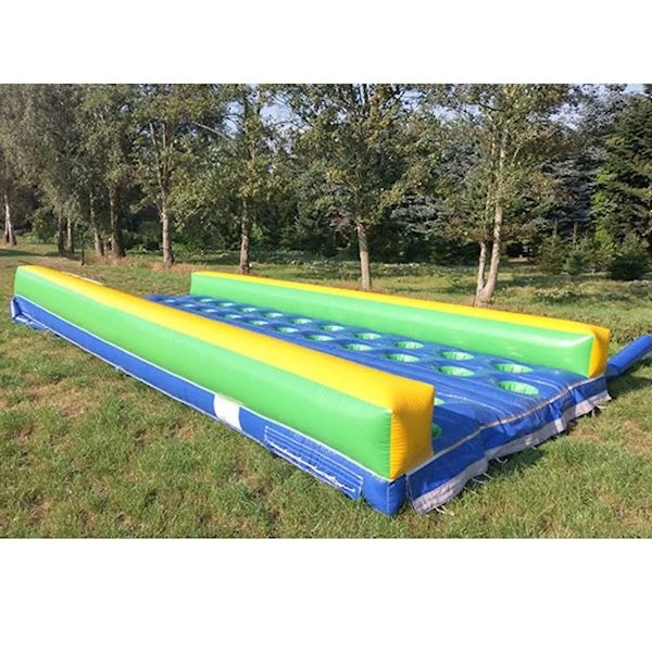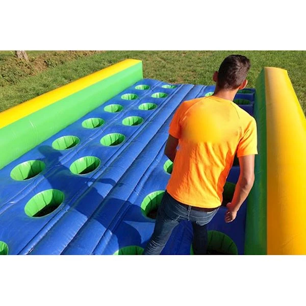 Je hebt 2 vrijwilligers nodig voor de op- en afbouw. Het opzetten is relatief eenvoudig en binnen 15 minuten gebeurd. Je kunt de stormbaan eenvoudig aan elkaar koppelen en opblazen.