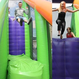 Deze stormbaan is 30 meter lang, 7 meter breed en 6,5 meter hoog dus een echte blikvanger! Deze stormbaan bestaat uit de twee spectaculairste onderdelen van onze Swipe Off serie, namelijk de dubbele bouncing balls, bekend van het tv prorgamma wipeout ® waar twee deelnemers tegelijk op de grote rode ballen kunnen springen. Daarna wacht de dubbele base jump waar twee deelnemers tot grote hoogte klimmen om vervolgens naar beneden te springen. De vrije val van 3 Meter zal zeker voor genoeg adrenaline zorgen! Deze stormbaan is van Nederlandse kwaliteit. Deze baan is door professionals ontworpen, vervaardigd uit het beste materiaal, en gekeurd door het Liftinstituut. Hierdoor is onze baan niet alleen zeer veilig maar ook heel erg duurzaam.