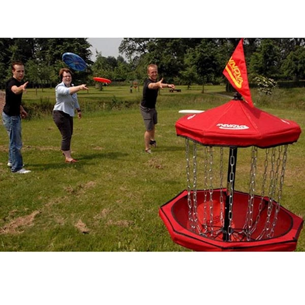 Disc golf huur je met in totaal 9 pole holes. Deze poles kun je op iedere vlakke ondergrond plaatsen. Hoe verder je de poles uit elkaar zet, hoe moeilijker het spel natuurlijk wordt. Je kunt er voor kiezen om een parkours te maken met verschillende obstakels zoals bomen 🌳 of attributen. Op deze manier breng je extra spanning in het spel! Dit té gekke spel speel je solo of in teamverband. Wie wordt de winnaar van de dag 🥇??