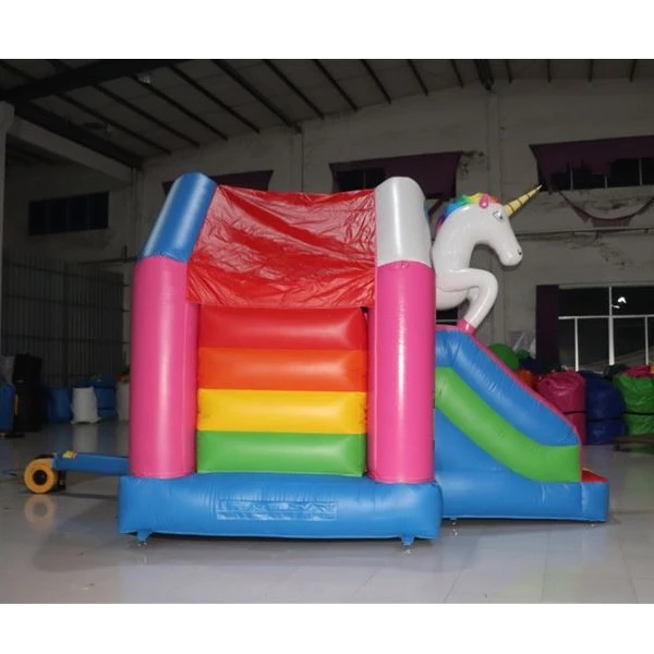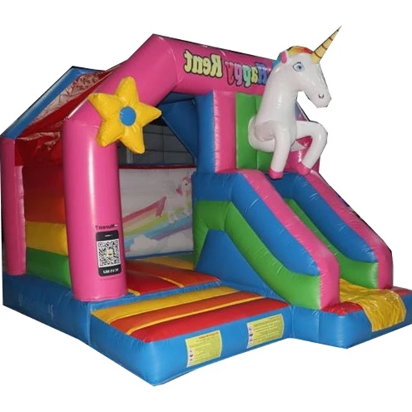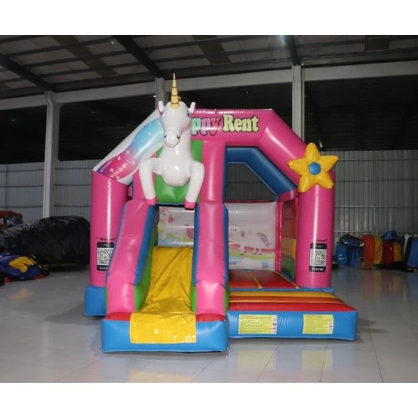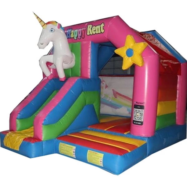 De eenhoorn is een mythisch dier met een lange, puntige hoorn midden op zijn voorhoofd. Laat die nou net in dit prachtige roze springkussen met glijbaan zitten! Dit luchtkussen doet je fantasie prikkelen en zal zeker voor het nodige speelplezier zorgen bij die kleine van je! We vertellen je graag alles over dit sprookjesachtige unicorn springkussen, maar eerst waarom je hem bij Happy Rent moet huren: