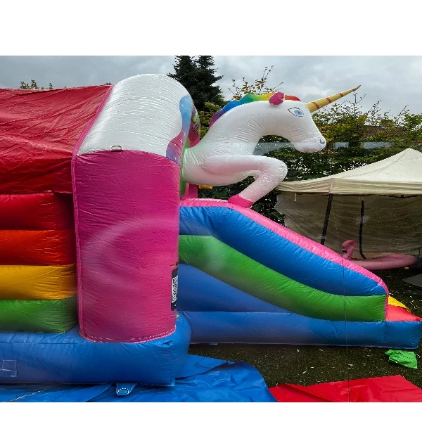 Je kunt in dit springkussen glijden en springen in een leuke unicorn wereld, in dit opvallende Slide Combo springkussen kan het allemaal. Tevens heeft dit luchtkussen een dak dat de kinderen beschermt tegen de felle zon of lichte neerslag. Dit springkussen mag op je feestje zeker niet ontbreken!