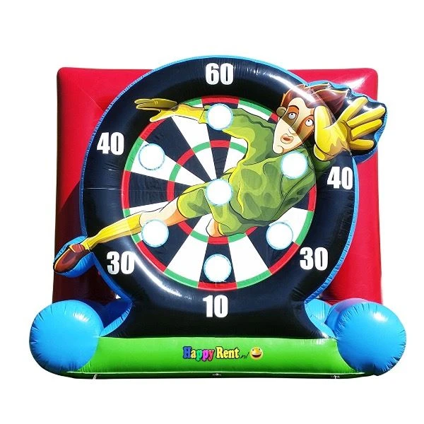 Wil je met klitteband voetballen op een dartschijf schieten? Huur dan een ander spel genaamd Voetbal Darten, dit Voetbal Dartbord is zowel te huur in Gemert, Noord-Brabant als in Heerlen, Zuid-Limburg.