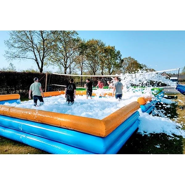 Dit spel wordt gespeeld met de voeten in het water. Het is nóg hilarischer om het spel te huren met schuimkanon. Het bad zit dan vol met schuim🧼 en geeft een super leuke twist aan het Water Volleybal spel. Met dit volleybalveld op jouw feest of evenement heb je een middag vol met waterplezier. Het spel spelen is al leuk, maar kijken misschien nog wel veel lachwekkender😂!