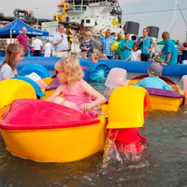 Stap aan boord van een van onze AquaBootjes en bestuur het bootje als een ware kapitein. Door met je handen een draai te geven aan de hendels, komen de radaren in beweging en bestuur je de bootjes. Als aan het ene rad sneller draait dan de andere maak je bochtjes en kun je zo een heel zwembad rond dobberen. Laat de pret maar beginnen!