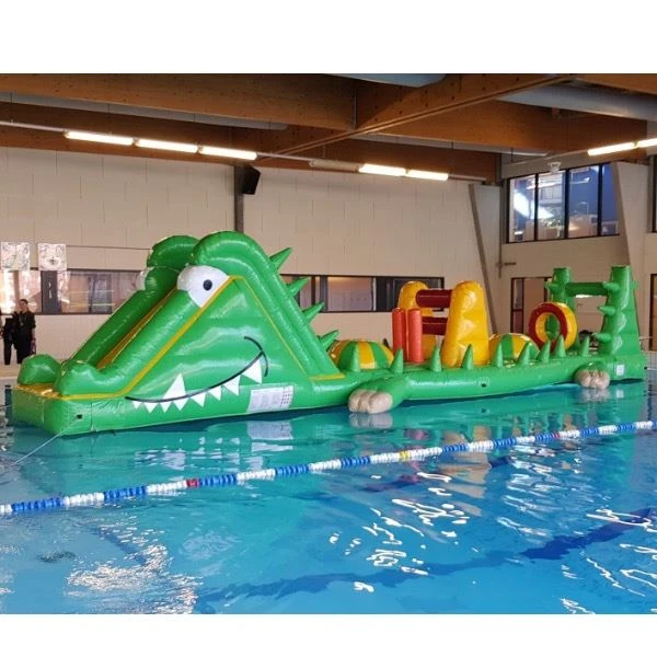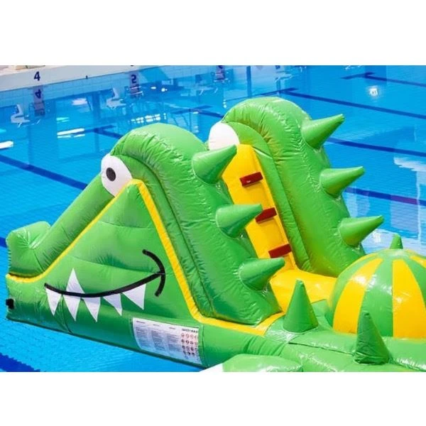 Deze stormbaan is speciaal ontworpen om te gebruiken op water, ideaal voor gebruik in bijvoorbeeld een zwembad of op een meer. Deze krokodil waterstormbaan voor in het zwembad kun je direct via Happy Rent Verhuur huren voor jouw zwembad of event. Deze zwembad waterstormbaan in krokodil thema staat garant voor urenlang speelplezier in het water. Je kunt deze stormbaan voor op water direct online huren bij onze locatie in Heino, Overijssel.