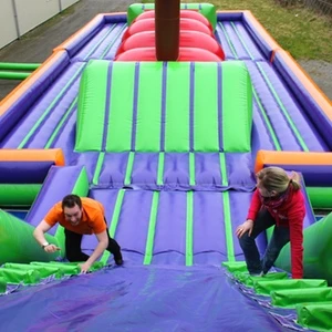Super leuke stormbaan, zeker aan te raden voor grotere groepen! Paste ook precies in onze Bo-Rent bus om mee te nemen, maar volgende keer nemen we toch wel bezorging erbij, want het is flink pakket. Hij is wel enorm snel opgezet.