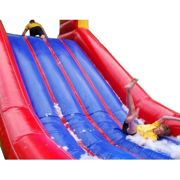 Deze waterglijbaan is wellicht de meest traditionele attractie die je op elke zeskamp of sportdag tegenkomt, vanwege het grote succes mag deze zeephelling eigenlijk op geen enkel sportief evenement ontbreken. Je kunt deze zeephelling aan de ene kant beklimmen en er aan de andere kant vanaf glijden. Deze attractie dankt zijn naam aan de groene zeep die vaak gebruikt wordt om deze slide mee in te smeren, op die manier wordt de helling nog gladder en glij je nog sneller naar beneden. Je huurt deze zeephelling natuurlijk bij Happy Rent Verhuur want bij ons: